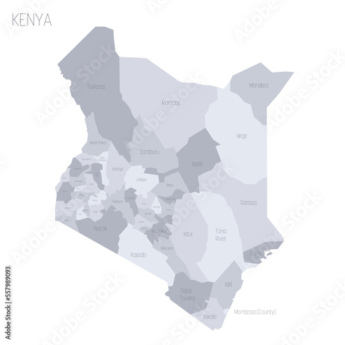 Kenya political map of administrative divisions - counties. Grey vector map with labels.