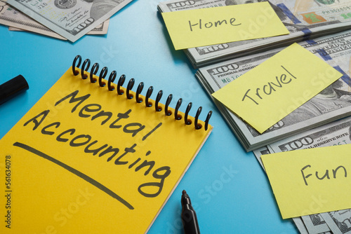 Stacks of money and inscription in the notepad Mental accounting.