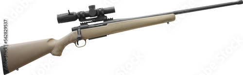 Scope mounted on a brown bolt action rifle