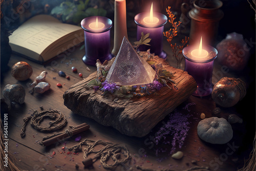 Magic still life. Esoteric still life. magical altar. Ritual. AI generation