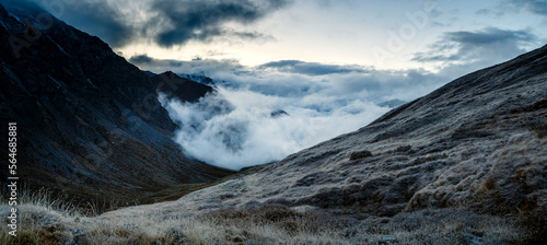 Parc du Queyras, Hautes Alpes, France. La nuit tombe sur la vallée de l'agnel