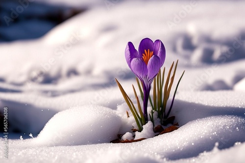 fleur de crocus qui pousse au travers de la neige - illustration ia
