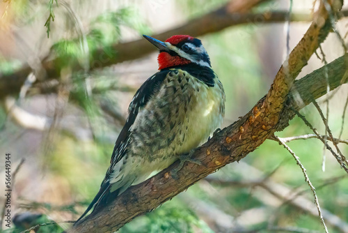 Yellow-bellied sapsucker perched on a branch looking to the side