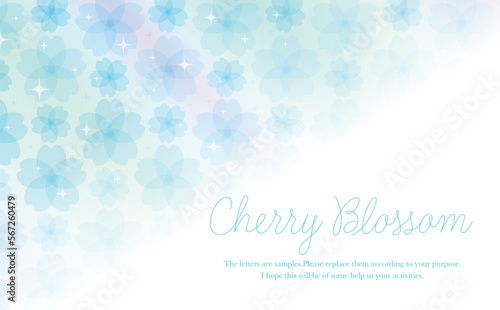 透明感のあるおしゃれな春の桜のグラデーションフレーム_ベクター素材_横長コピースペース_水色