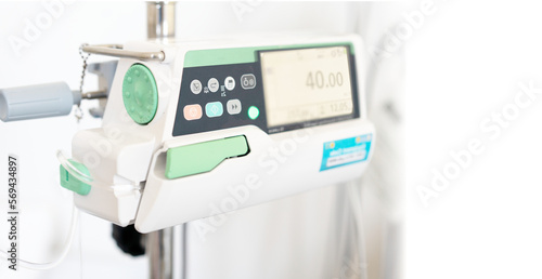 automatic saline drip infused iv fluid in vein for treatment in hospital