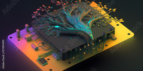 Circuit board, representing the interconnectedness and flow of ideas and knowledge in a simplified 3D rgb design. generative ai