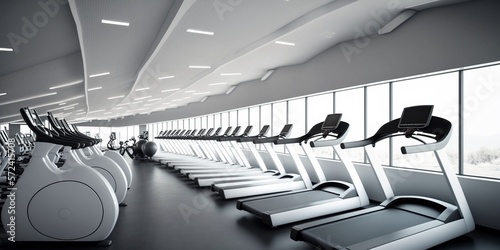 Leeres Fitnessstudio mit Laufbänder, ai generativ