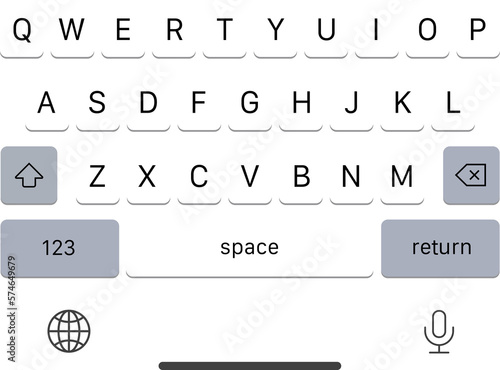 Modern keyboard of smartphone on transparent background. Keyboard for smartphone in gray. PNG image