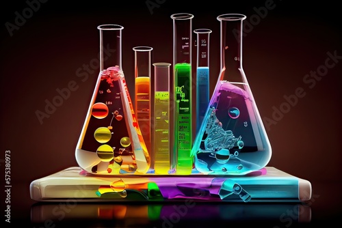 Generative AI illustration of the periodic chart are test tubes and flasks used in laboratories with colored liquids