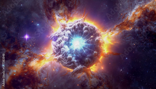 Cosmic Debris from a Supernova Explosion in Space with Stars and Galaxies, Generative AI