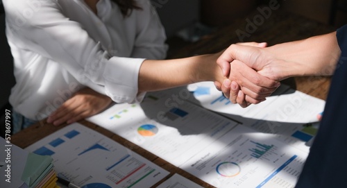 The business people shake hands after the meeting was successful and agreed upon