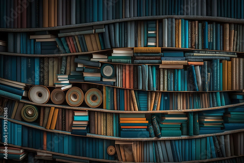 Bookshelves background. Generative AI.