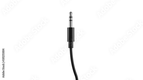 Silver 3.5mm mini jack plug with black cable isolated on transparent background. Audio concept. 3D render