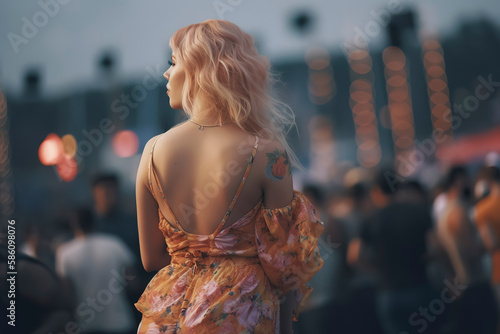 Summer Vibes: Beautiful Woman at Music Festival - Colorful Photography. Generative AI