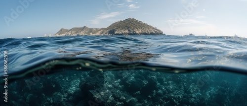 View of the blue sea surface of the water.Aerial view. Panoramic shot. Generative AI