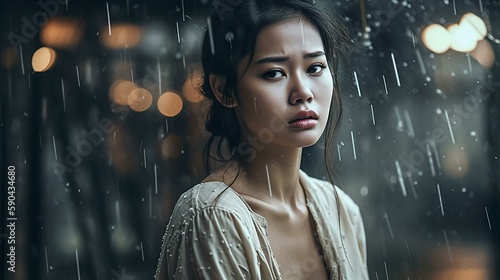 雨の中、悲しそうな表情の女性(失恋・絶望・悲しい・Generative AI)