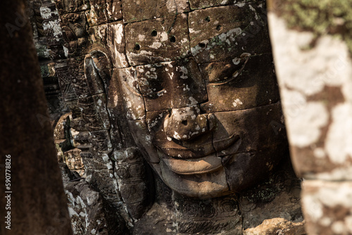 Ruins of Bayon Temple in Angkor wat in Siem Reap, Cambodia