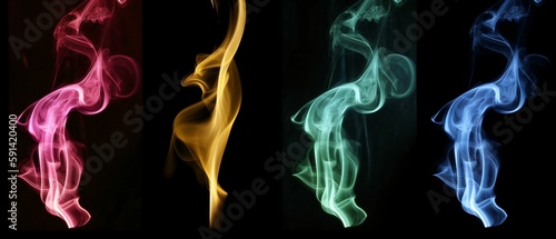 effet de fumé de couleurs variées, dur fond noir, arrière plan graphique, illustration ia générative