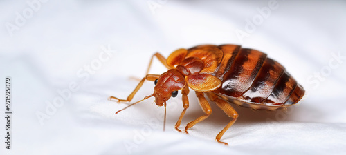 Generative AI, Up Close and Creepy, The Bloodsucking Bed Bug Infestation Unveiled on a White Sheet - A Nasty Parasite Lurking in Your Bed Linens and Mattresses.