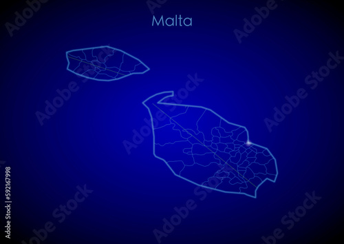 Malta concept map with glowing cities and network covering the country, map of Malta suitable for technology or innovation or internet concepts.