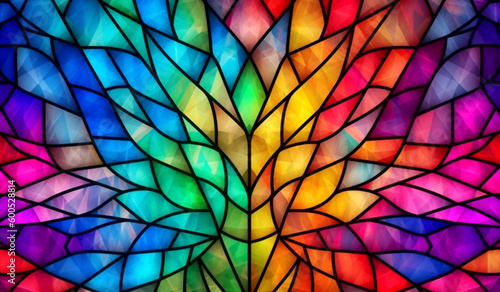 Bright multicolored stained glass window, abstract geometric background. AI generated