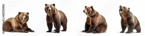 Wildlife animals bears banner panorama long - Collection of standing, sitting, screaming, lying group of brown bear (ursus arctos) , isolated on white background, Generative Ai
