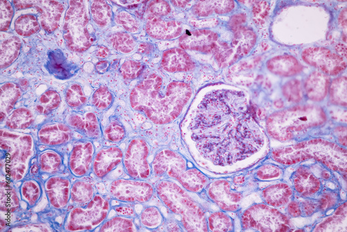 Histological Pancreas human, Liver human, Vermiform appendix human and Kidney Human under the microscope for education.