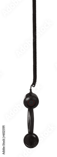 Receiver handset from an old retro telephone hanging down.