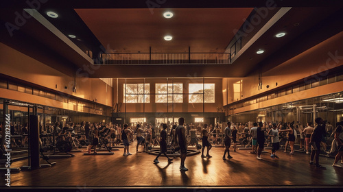Fitness in Action: An Equipped Gym Filled with Energetic Individuals Engaged in Physical Activity