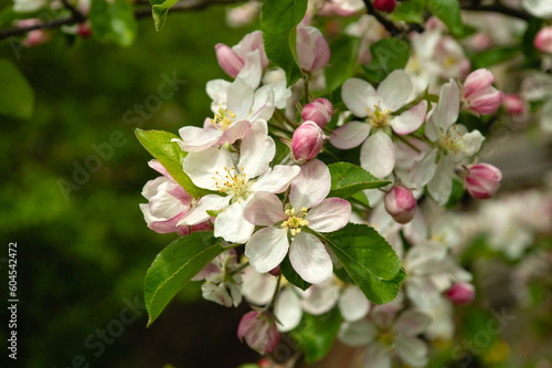 Spring blooming apple garden. Branch with blossoming apples. Spring flowering of trees
