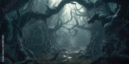 Twisted scary trees along a forest path