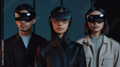 Generative ai young multiethnic group of people using 3d vr goggles
