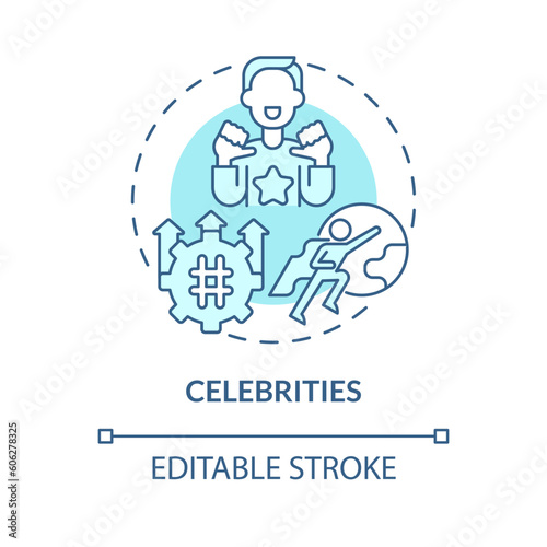 Celebrities turquoise concept icon. Famous people. Trend setter. Public relation. Opinion leader. Brand promotion abstract idea thin line illustration. Isolated outline drawing. Editable stroke
