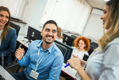 Educator and students in programming school