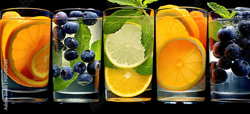 Cold summer lemonade with lime, orange, blueberries and mint, Cold drink of fresh lemonade