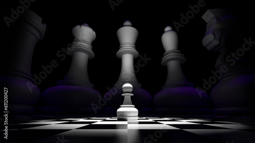 3D Illustration of a White pawn Surrounded by Intimidating Circle Pieces