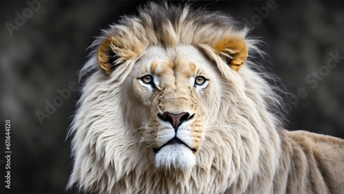 Magnificent Lion king , Portrait of majestic white lion on black background, Wildlife animal, generative ai