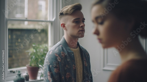 young adult man and woman, couple or friends, fictional problem, sad disappointed and afraid and expression with hopelessness