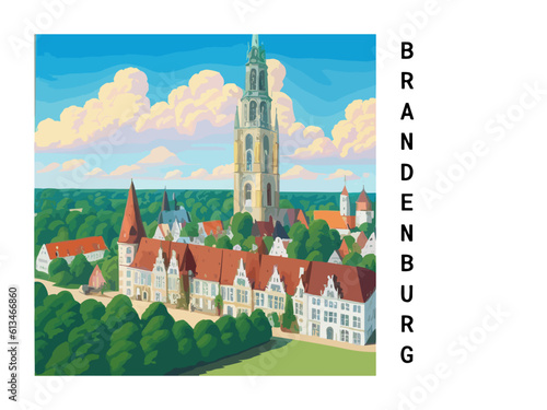 Brandenburg: Vintage artistic travel poster with a German scenic panorama and the title Brandenburg