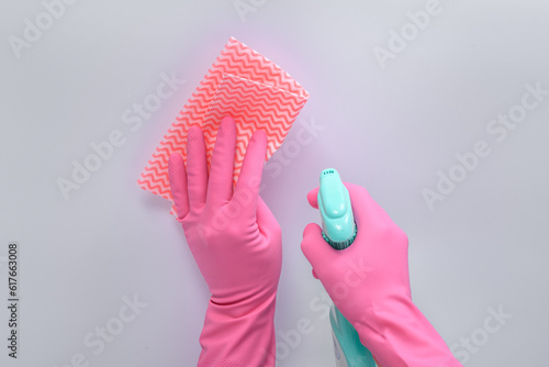Ręce zabezpieczone rękawicami przed domową chemia do czyszczenia powierzchni