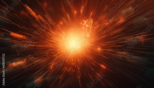 Glowing star igniting abstract galaxy backdrop generated by AI
