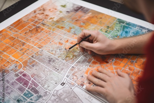 urban planner, sketching out the details of a new neighborhood in vibrant colors, created with generative ai