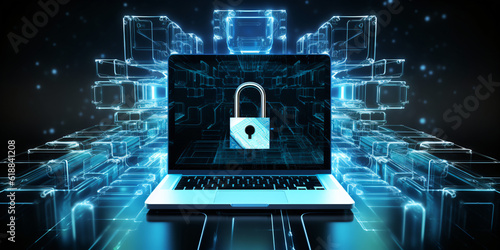 Cyber-Sicherheitskonzept mit Laptop- und Vorhängeschloss-Symbol modern - mit KI erstellt