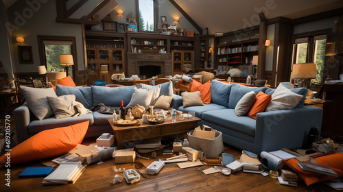 Unconventional Comfort: A Disorganized Living Room in a Family Home, Generative AI