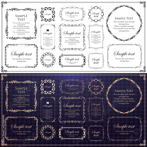 高級感のあるフレームデザインセット、アンティーク調のデザインマテリアル