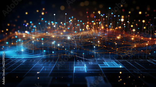 Business inteligence technology abstract background. Binary code algorithms deep learning.