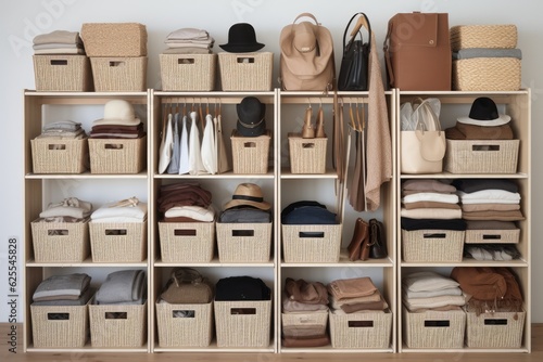 A display showcasing Marie Kondos storage boxes, containers, and baskets in various sizes and shapes to help organize and tidy up wardrobes. These organizer boxes are part of the KonMari method, a