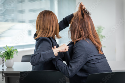 掴み合いの喧嘩をする女性社員