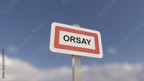 A sign at Orsay town entrance, sign of the city of Orsay. Entrance to the municipality.