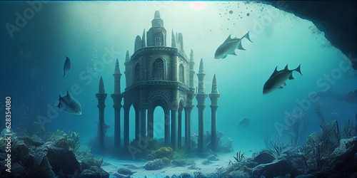 The sunken city of Atlantis reveals its grandeur through submerged remains hidden in the ocean